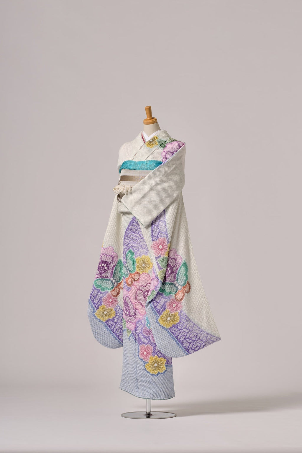 振袖、帯、長襦袢、帯揚げ、帯締め、半衿、前板、伊達〆、帯枕、衿芯、腰紐4本、三重仮紐、後ろ板、コーリンベルト