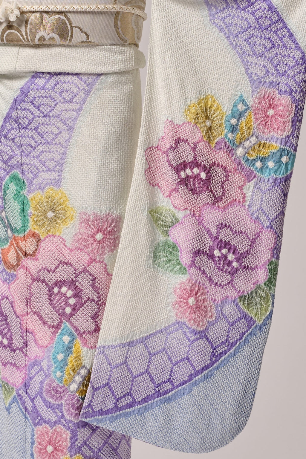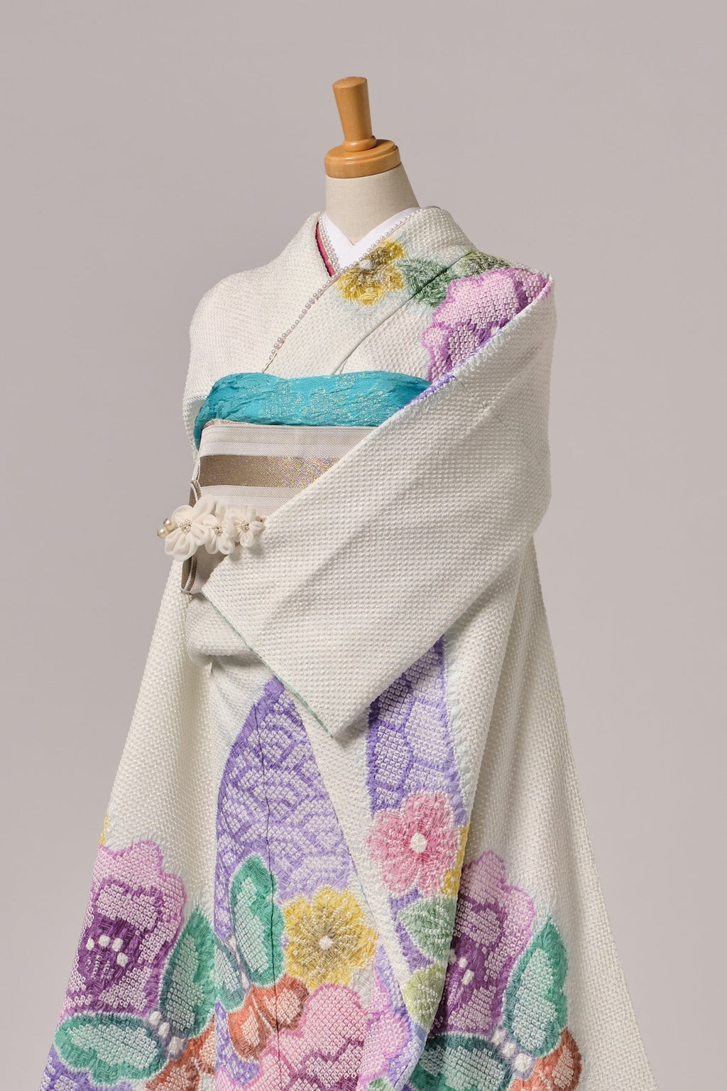 清らかな白地に施された絞りが、可憐で上品な印象を引き立てます。