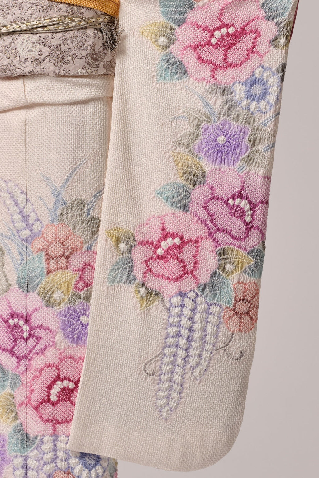 振袖、帯、長襦袢、帯揚げ、帯締め、半衿、前板、伊達〆、帯枕、衿芯、腰紐4本、三重仮紐、後ろ板、コーリンベルト