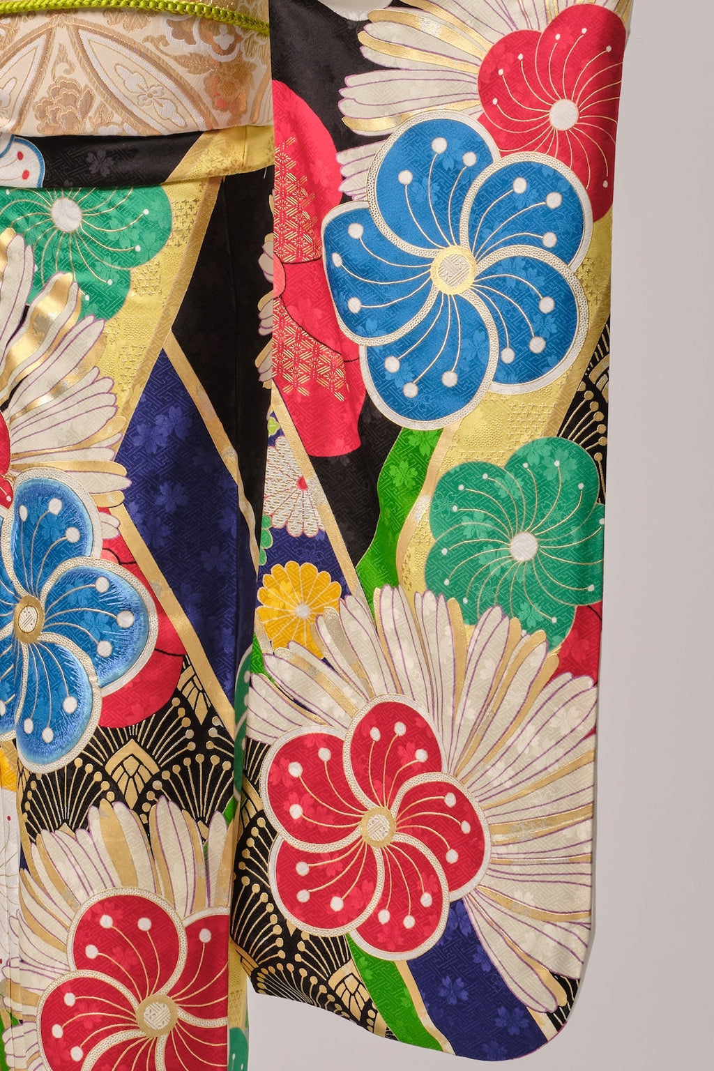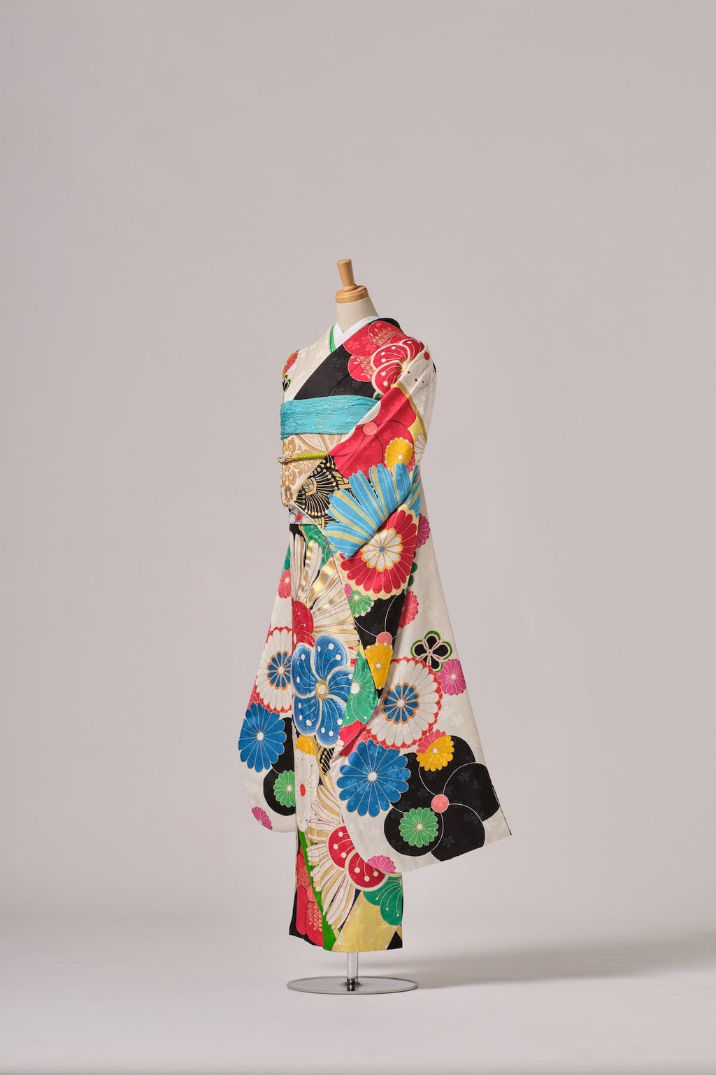 大輪に咲く花模様が美しく華やかな印象の一着。伝統を感じさせながらも、どこか新鮮な印象を与える一枚です。