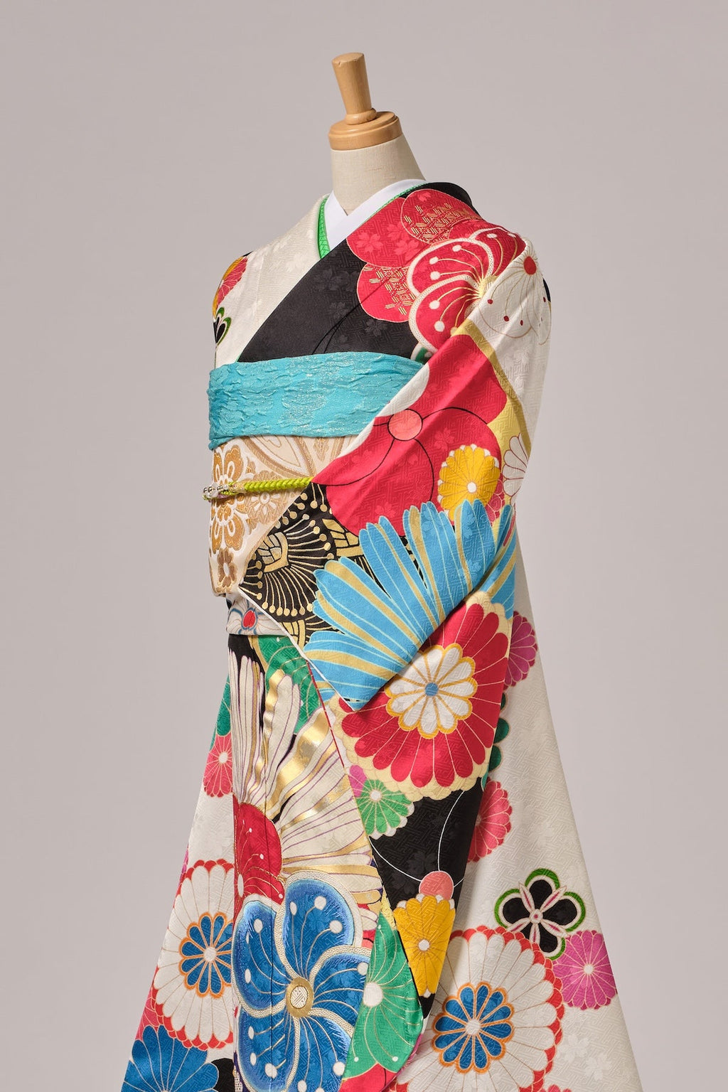 振袖、帯、長襦袢、帯揚げ、帯締め、半衿、前板、伊達〆、帯枕、衿芯、腰紐4本、三重仮紐、後ろ板、コーリンベルト