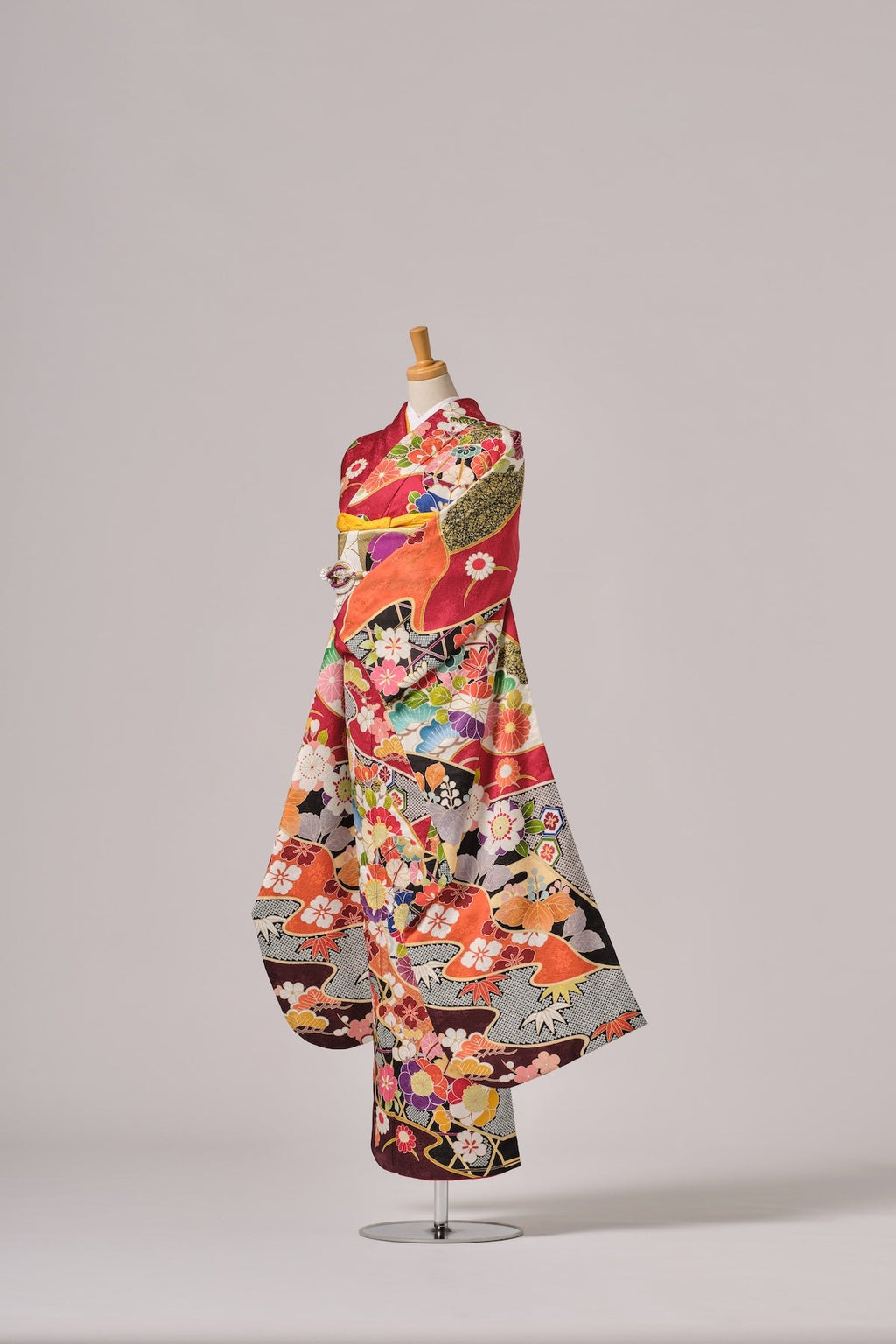 振袖、帯、長襦袢、帯揚げ、帯締め、半衿、前板、伊達〆、帯枕、衿芯、腰紐4本、三重仮紐、後ろ板、コーリンベルト