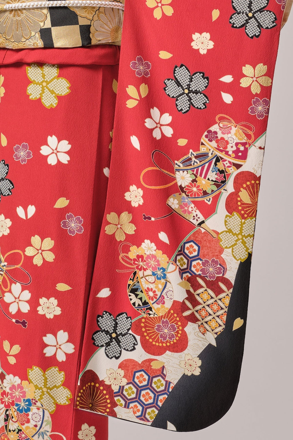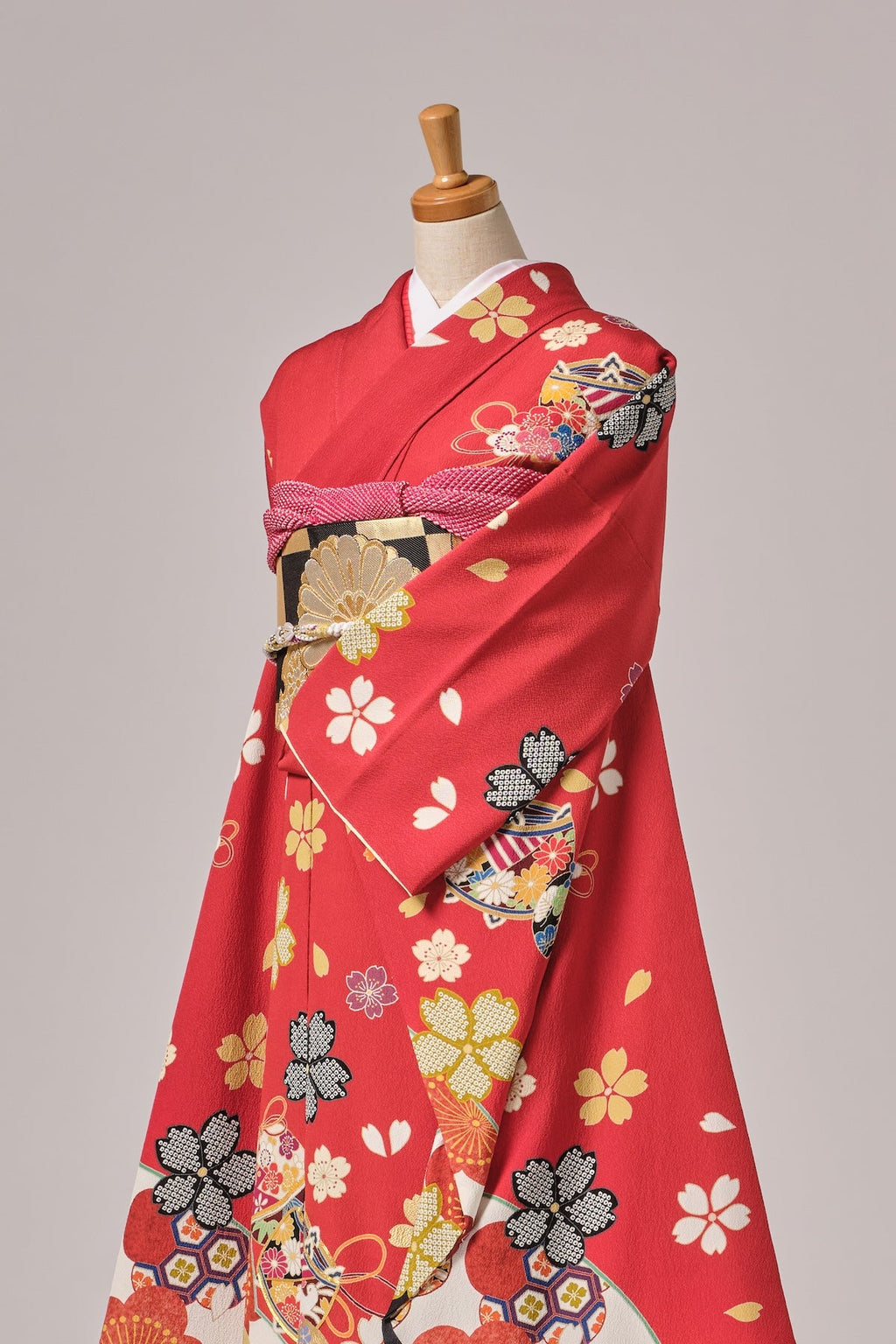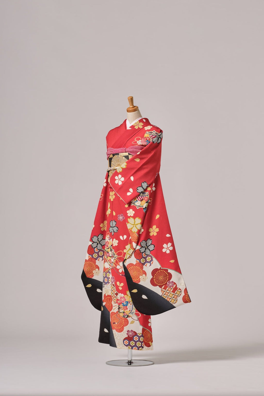 振袖、帯、長襦袢、帯揚げ、帯締め、半衿、前板、伊達〆、帯枕、衿芯、腰紐4本、三重仮紐、後ろ板、コーリンベルト