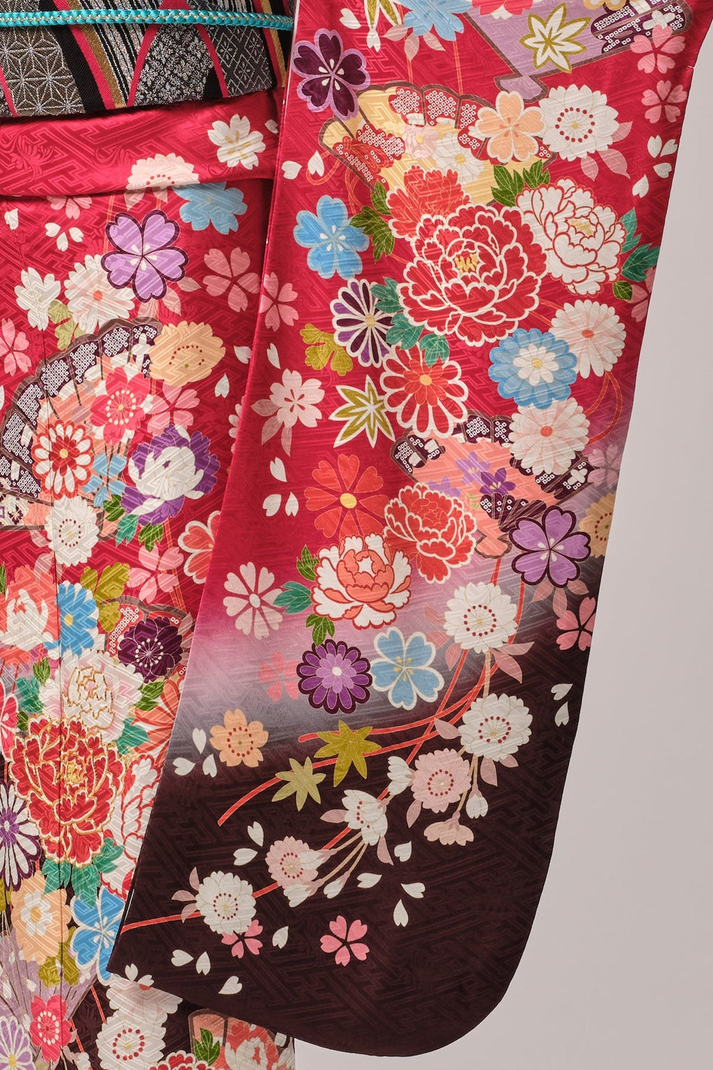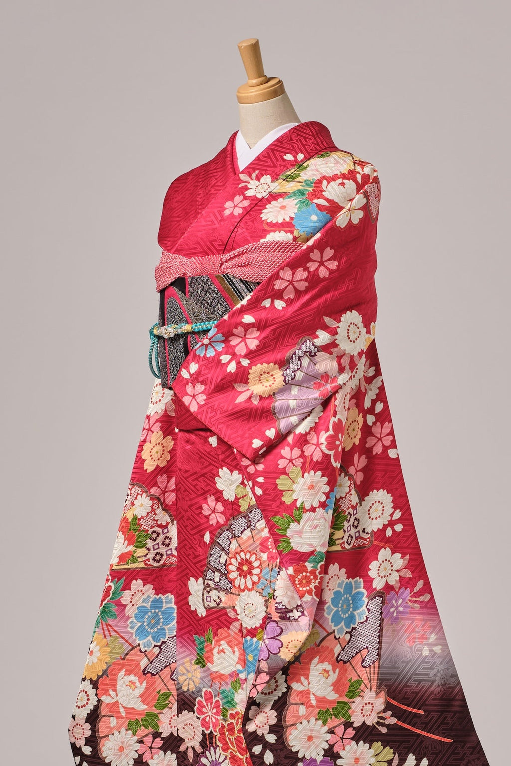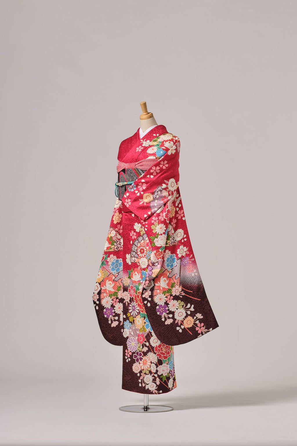 赤地に映える古典ならではの色彩と柄が、華やかさと格調を引き立てます。