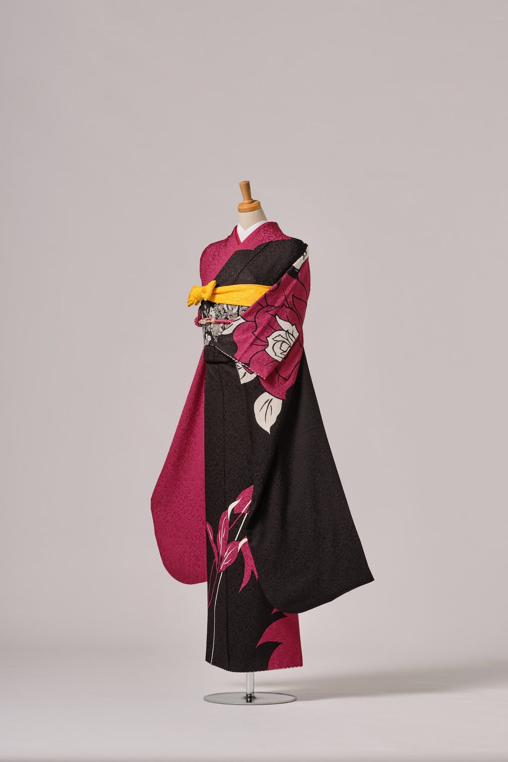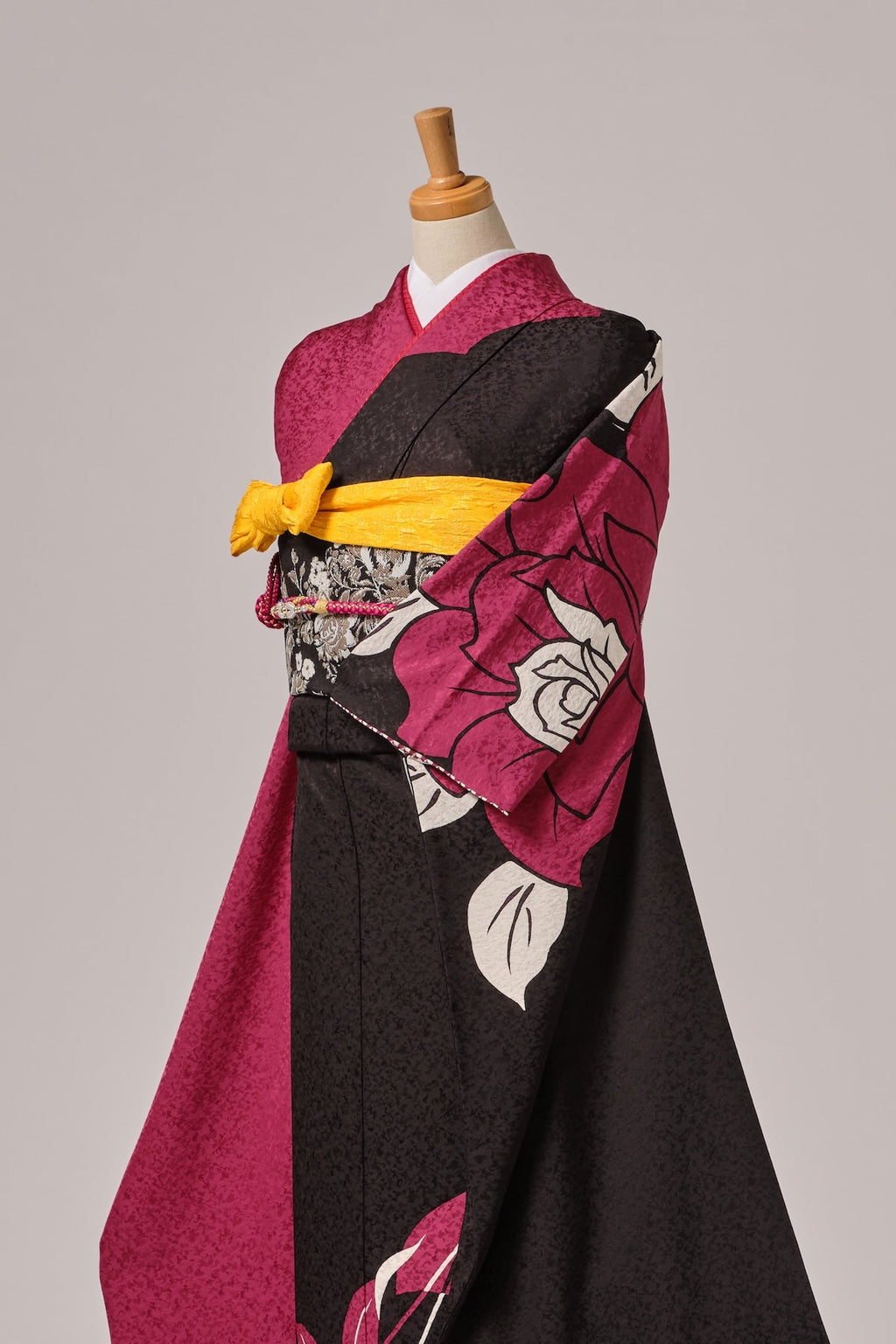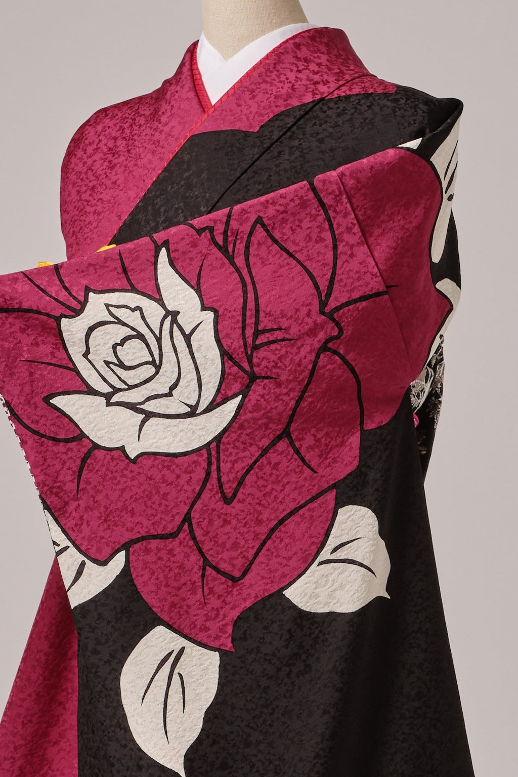 色の対比が美しく、洗練された色彩と柄ゆきが、現代的で華やかな印象を与えます。