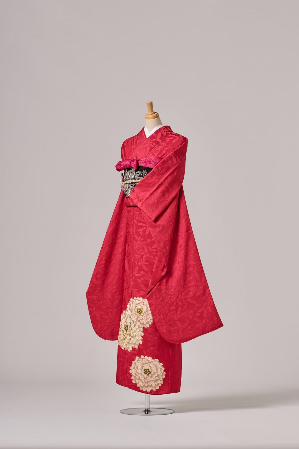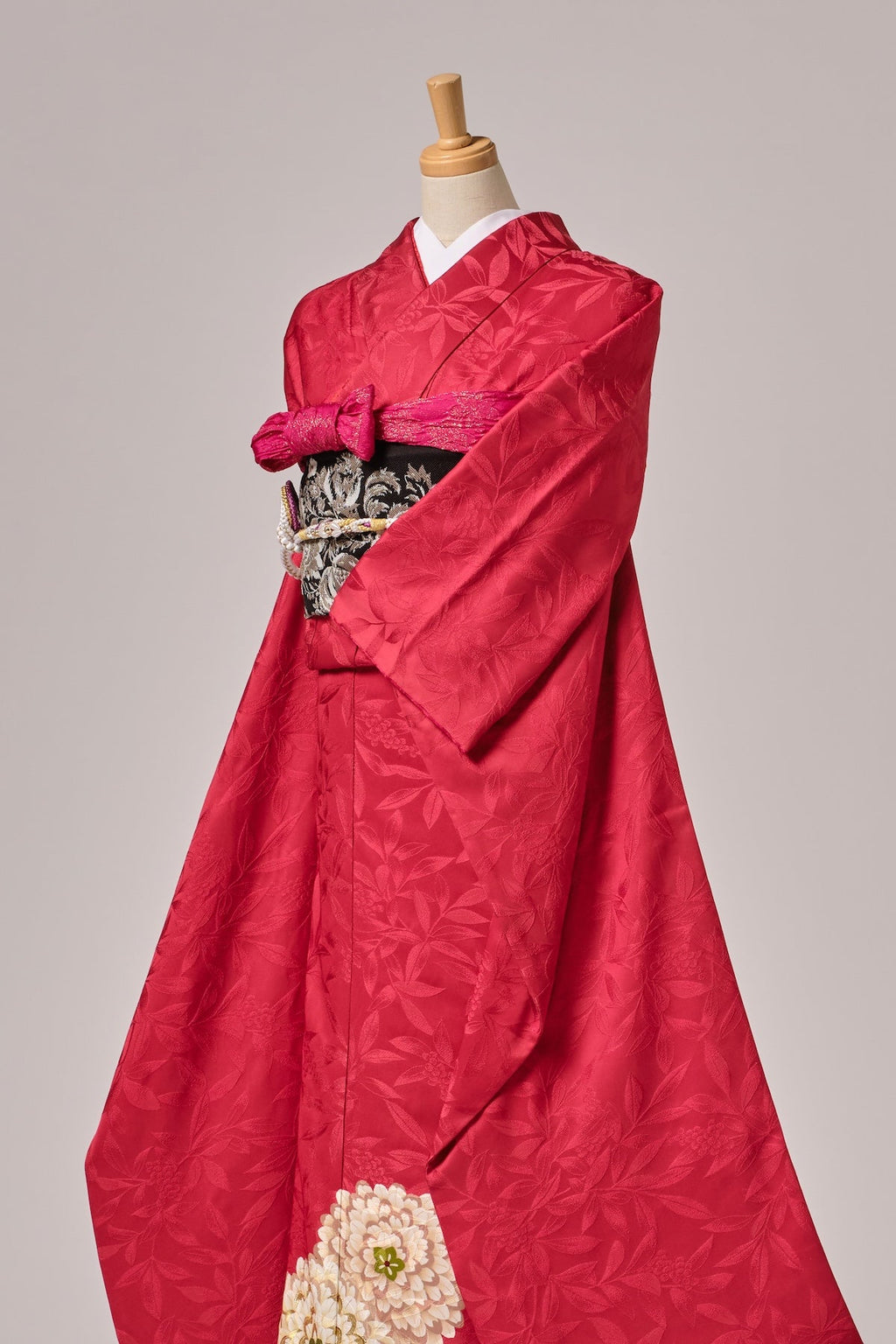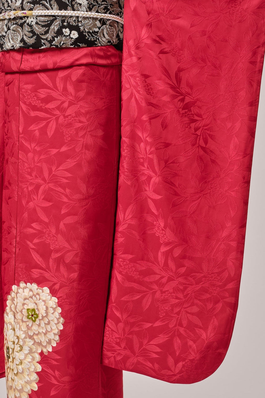 赤地に映える古典ならではの色彩と柄が、華やかさと格調を引き立てます。