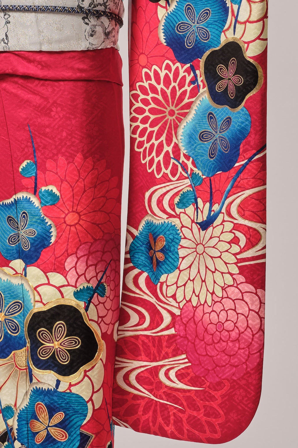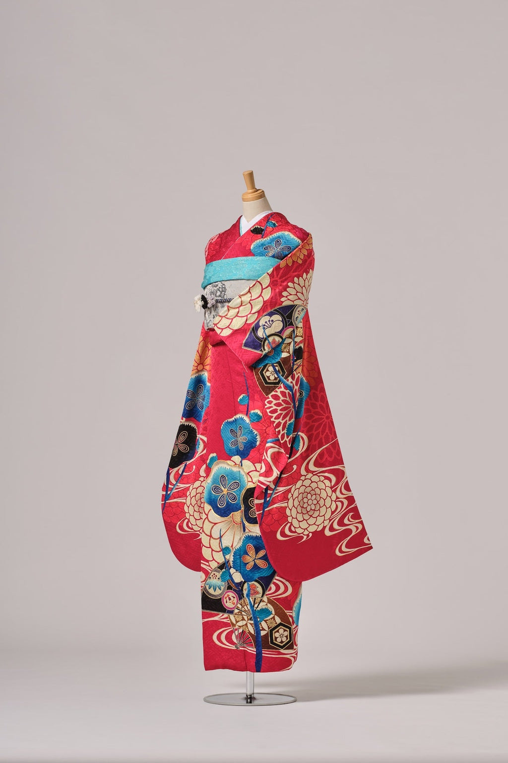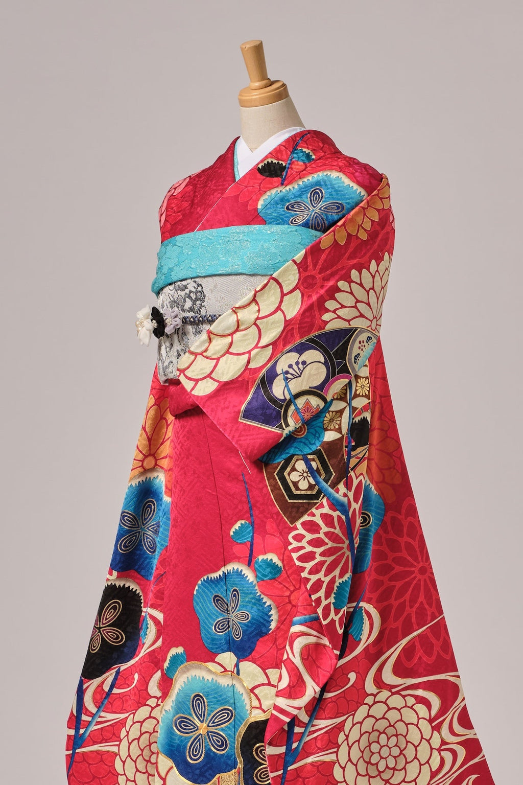 振袖、帯、長襦袢、帯揚げ、帯締め、半衿、前板、伊達〆、帯枕、衿芯、腰紐4本、三重仮紐、後ろ板、コーリンベルト
