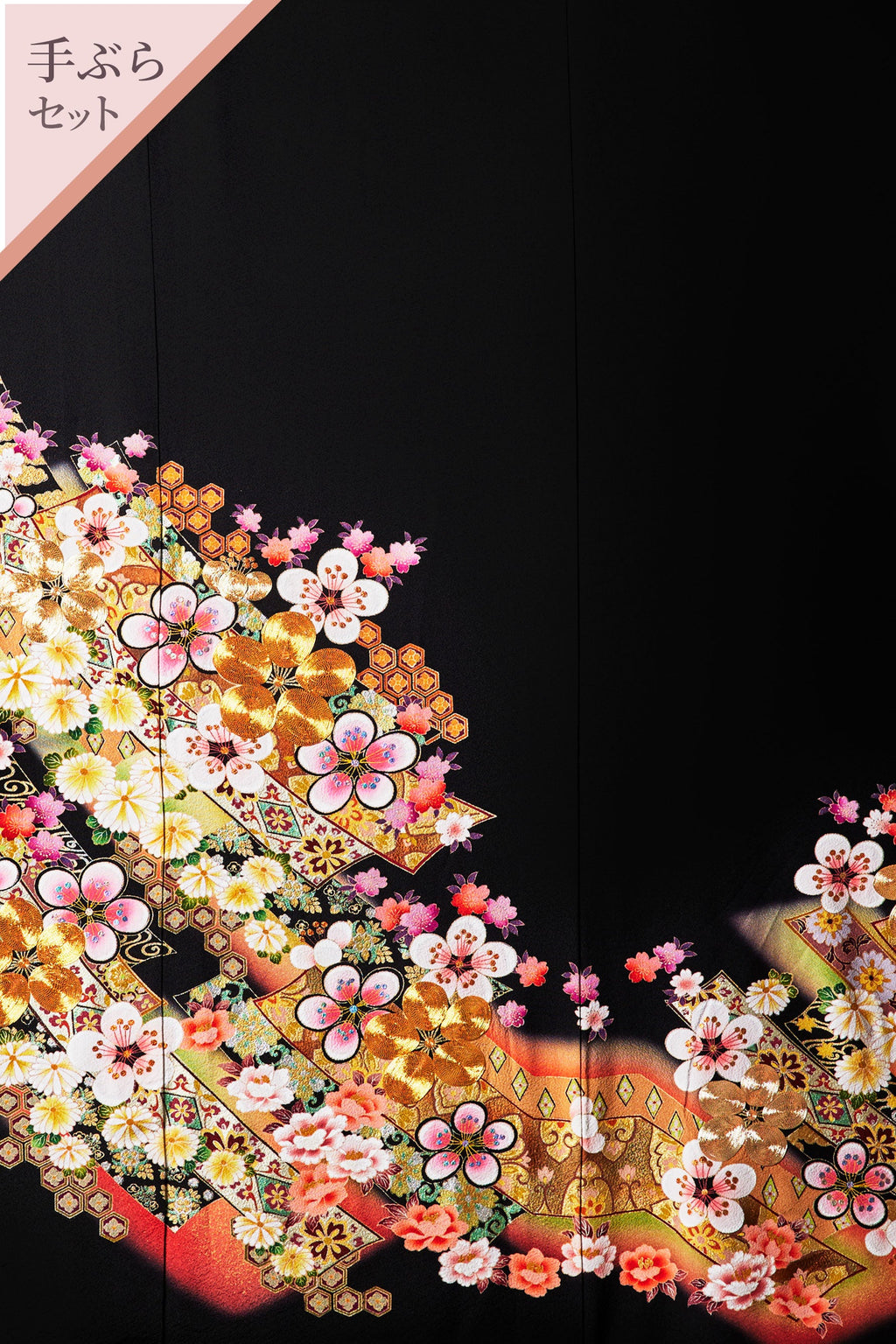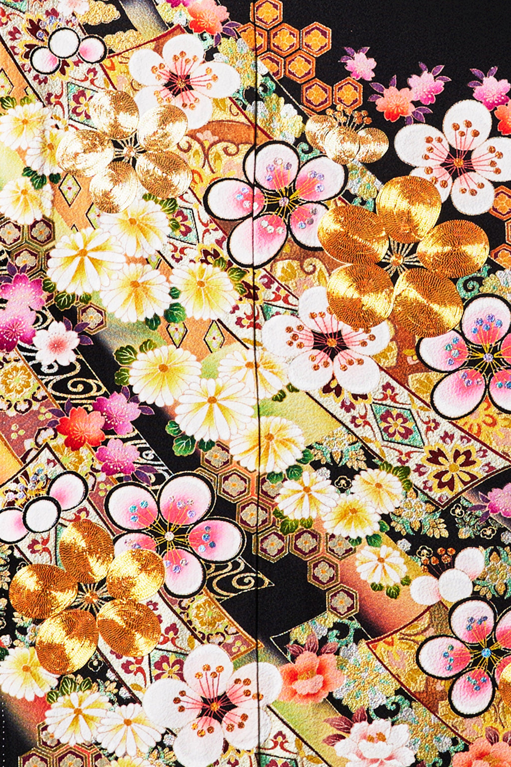 黒留袖に華やかさを添える花の模様。漆黒の闇に咲くような、幻想的な雰囲気をかもしだします。女性らしい色彩やタッチで描かれたものは柔らかさを、写実的なものは力強さを感じさせ、意匠化されたものは、描かれた真意を想像するのが楽しくなります。