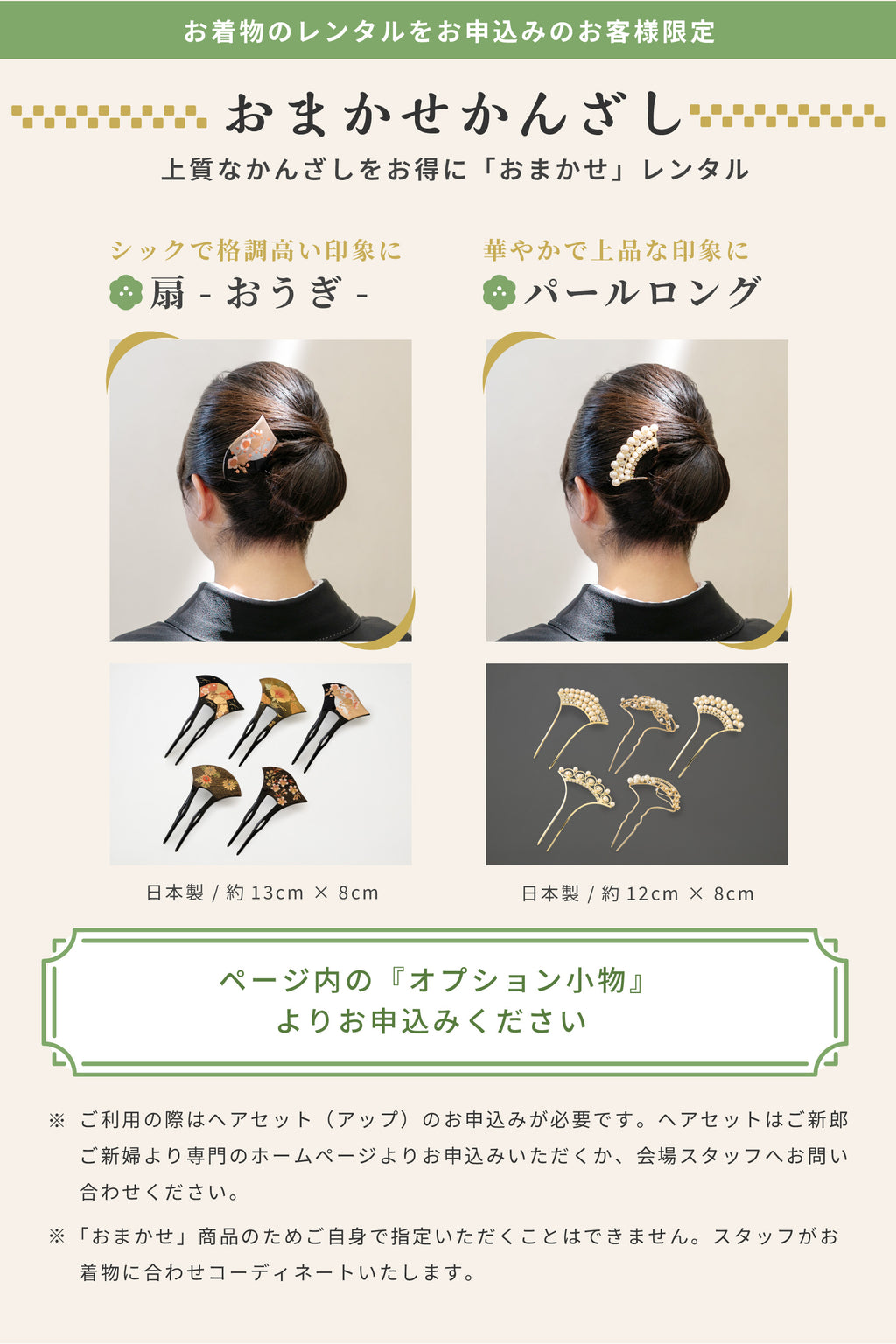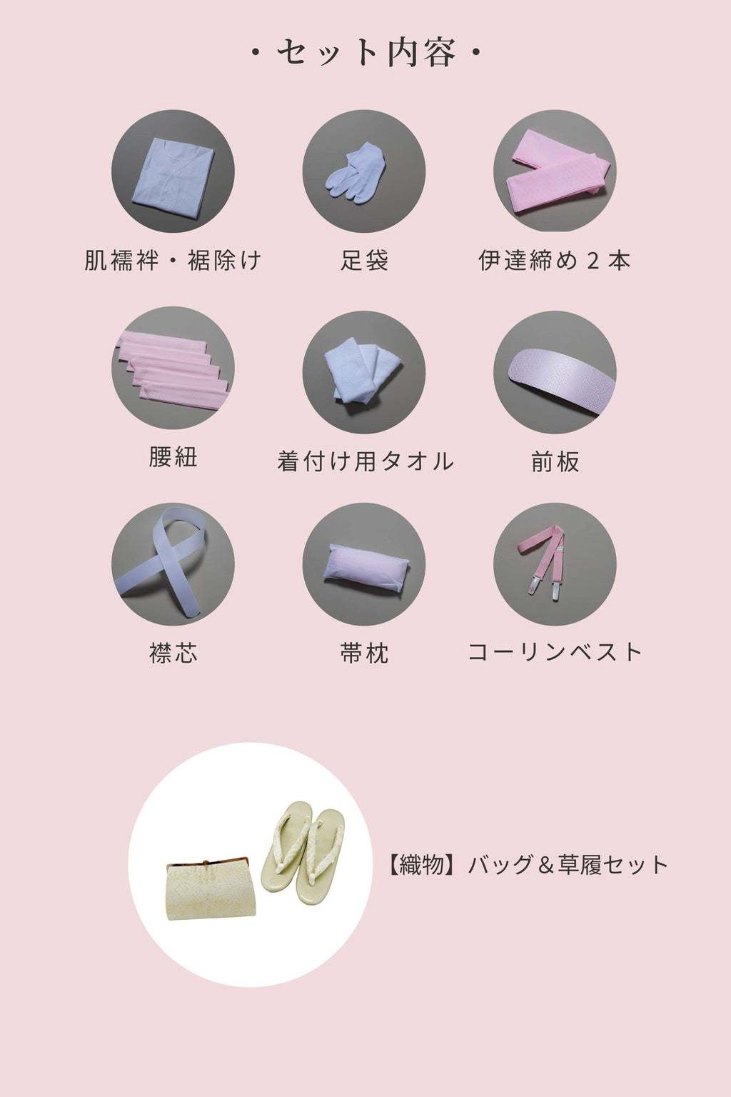 ・当日のお支度に必要なものが揃った「手ぶらセット」をご用意しておりますので是非ご利用ください。