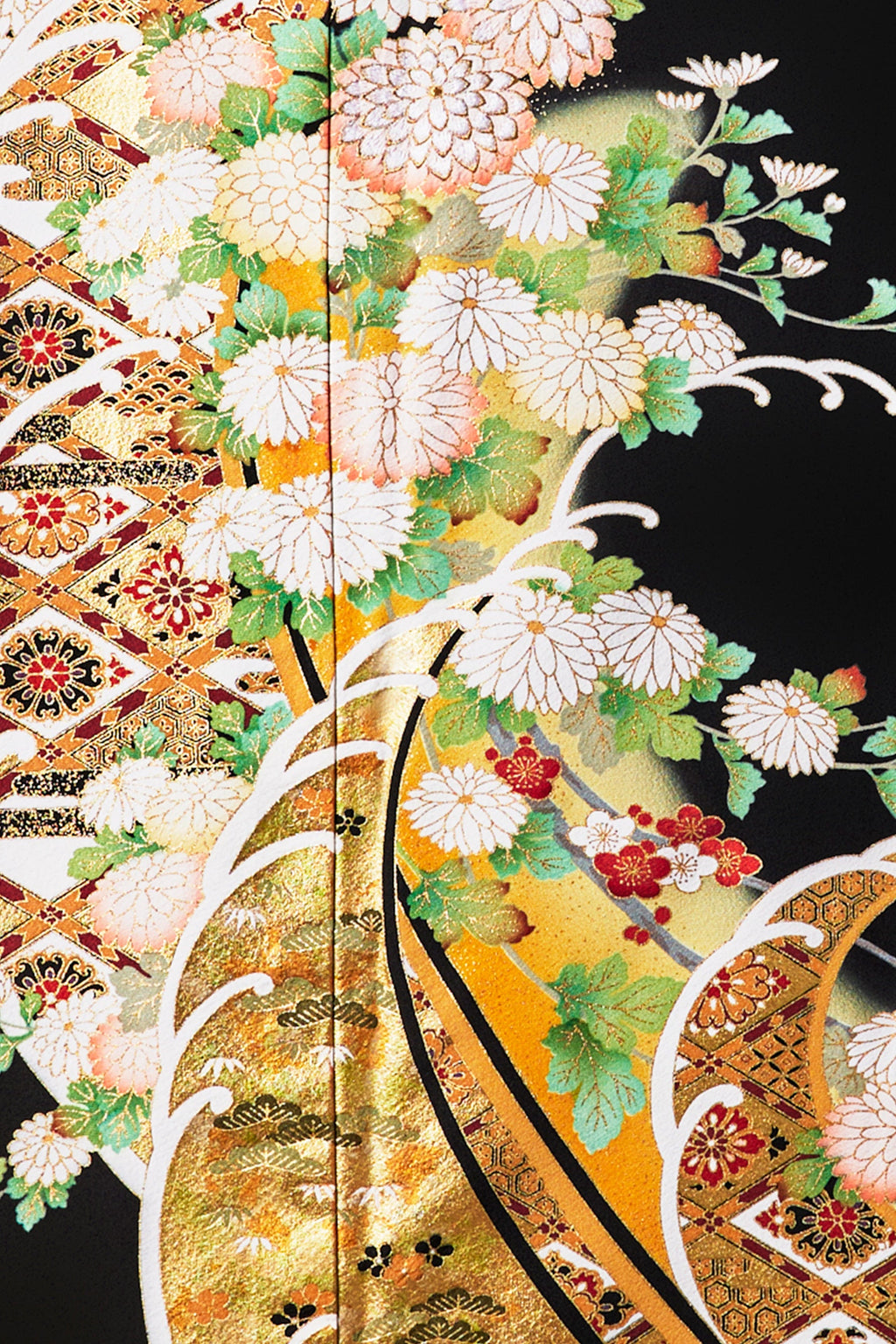 黒留袖に華やかさを添える花の模様。漆黒の闇に咲くような、幻想的な雰囲気をかもしだします。女性らしい色彩やタッチで描かれたものは柔らかさを、写実的なものは力強さを感じさせ、意匠化されたものは、描かれた真意を想像するのが楽しくなります。