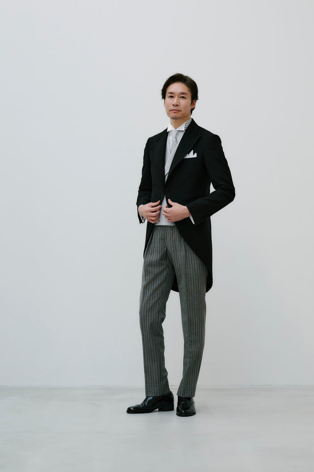 ●ご自身でご用意いただくもの:ウィングカラーシャツ、チーフ、グローブ、カフス、アームバンド、サスペンダー、U首シャツ、ズボン下、シューズ、靴下(黒)※オプションとして、レンタルや販売も承っております。